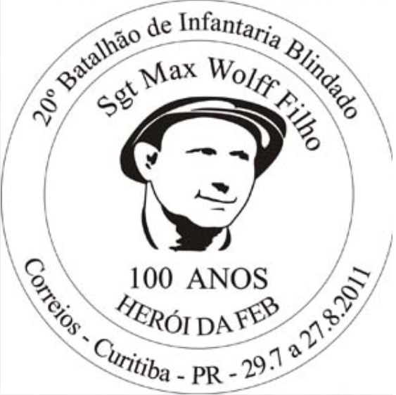 Carimbo comemorativo Sgt Max Wolff Filho, 100 anos Herói da FEB