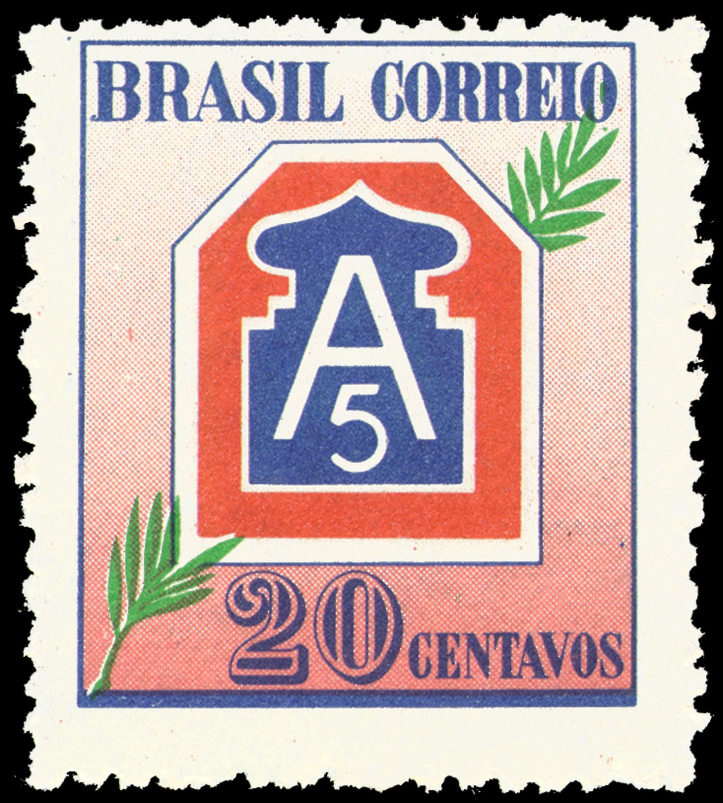 O selo apresenta o distintivo do 5º Exército de Campanha dos Estados Unidos da América, unidade do Exército americano na qual a Força Expedicionária Brasileira esteve vinculada durante a 2ª Guerra Mundial na campanha da Itália.