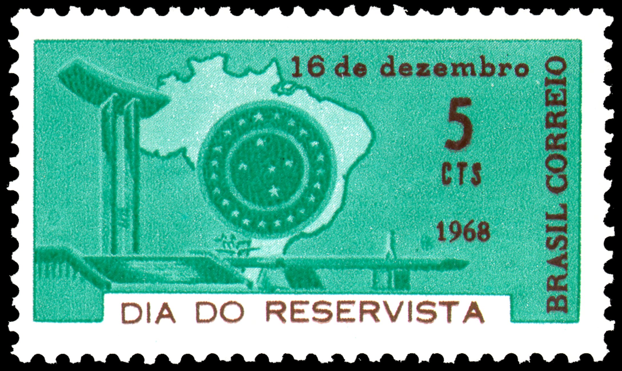 O selo apresenta representação do Monumento Nacional aos Mortos da 2ª Guerra Mundial, localizado na cidade do Rio de Janeiro-RJ. Em segundo plano, o mapa do Brasil com o escudo com o Cruzeiro do Sul, circundado por anel com 22 estrelas, escudete das Armas Nacionais. O Dia do Reservista é comemorado em 16 de dezembro, data do nascimento de Olavo Bilac, o patrono do Serviço Militar das Forças Armadas.