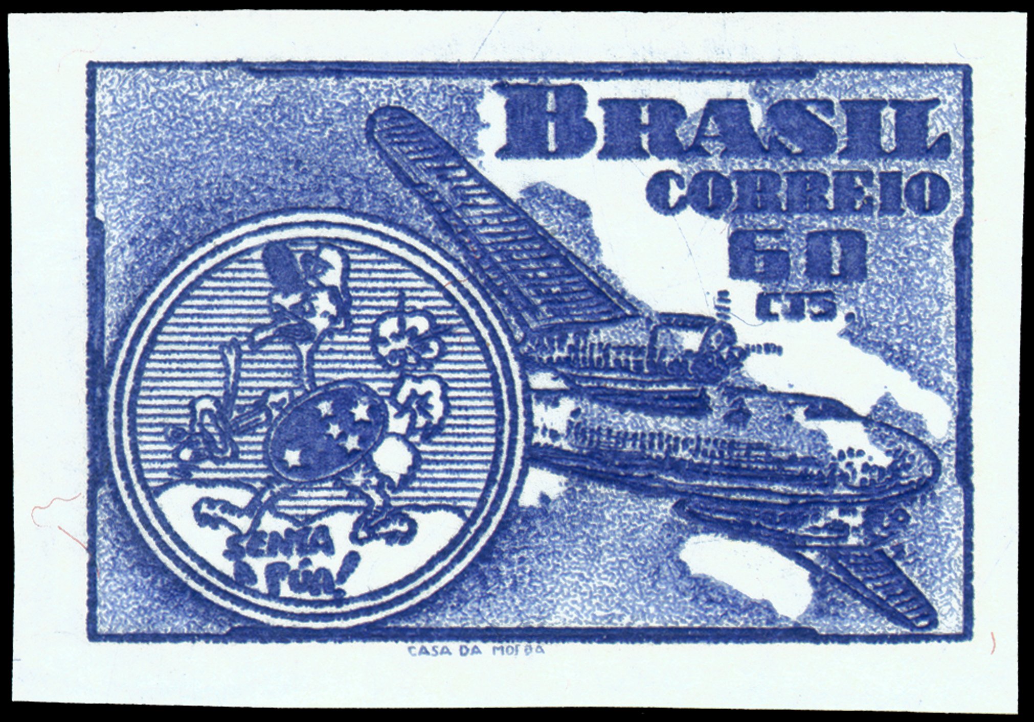 O selo apresenta, em primeiro plano, o emblema "Senta a Pua" adotado pelo 1º Grupo de Aviação de Caça da FAB. Ao fundo, uma representação de uma das aeronaves utilizada pelo grupo na 2ª Guerra Mundial, o C-47 Skytrain, sobreposta ao mapa da Itália.