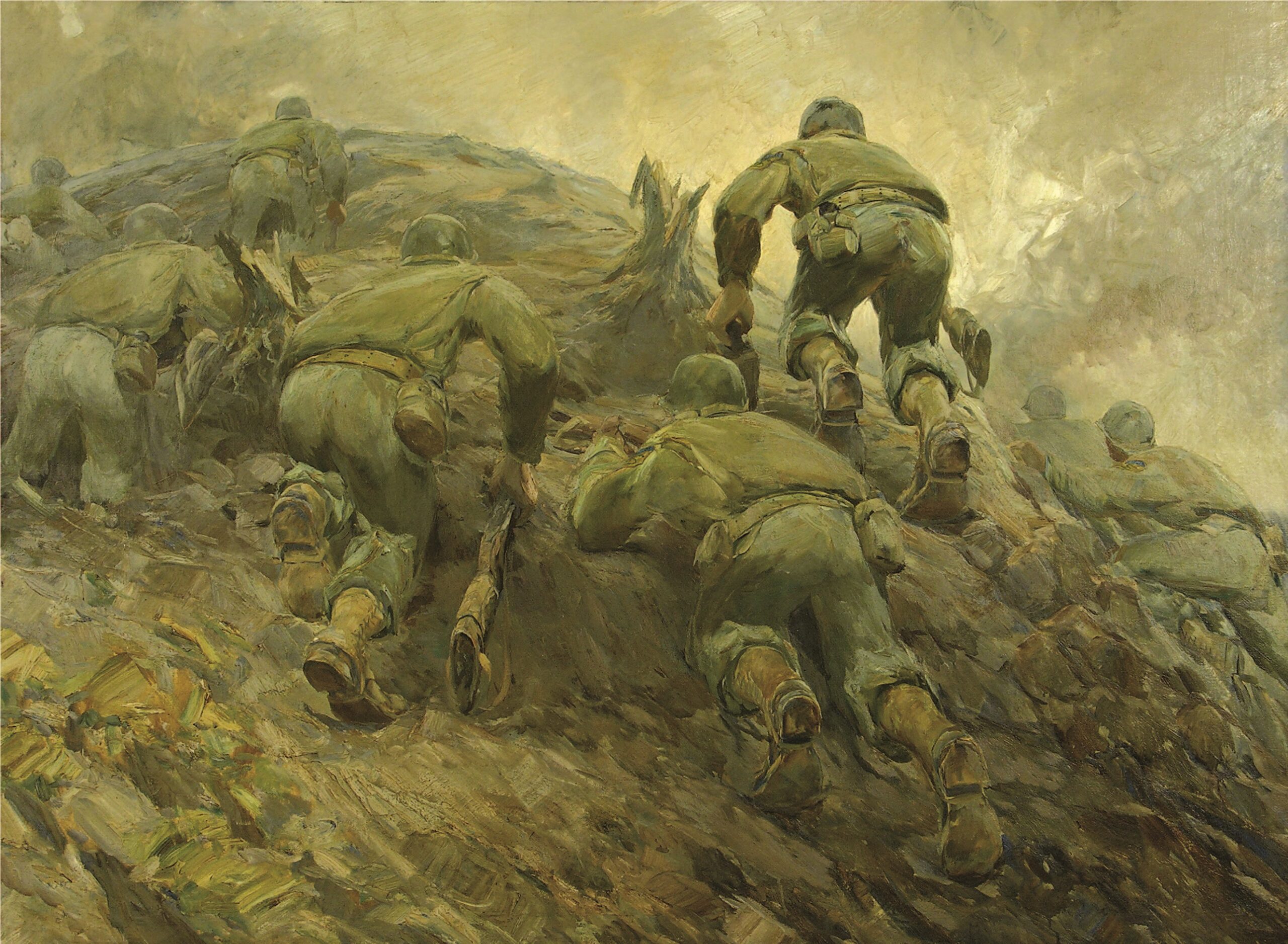 Pintura representa os soldados da FEB na Tomada de Monte Castelo.